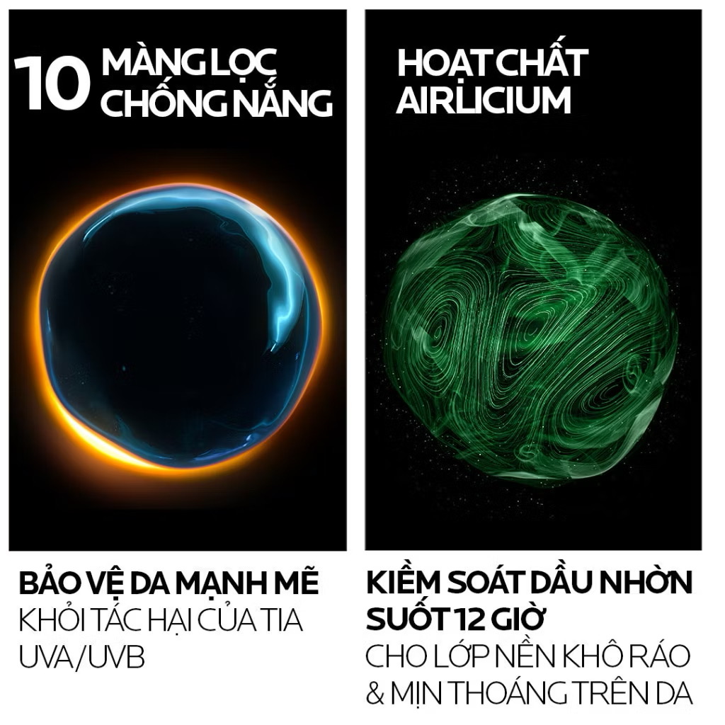 Hoạt chất Airlicium: Kiểm soát dầu nhờn suốt 12 giờ, cho lớp nền khô ráo & mịn thoáng trên da