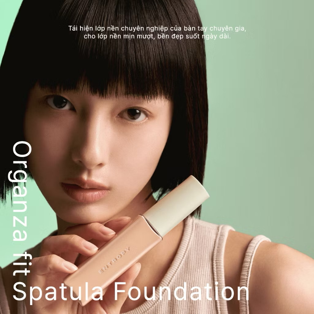 Entropy Organza Fit Spatula Foundation - kiệt tác trang điểm dành cho làn da yêu sự tinh tế. Tích hợp spatula tinh gọn chuẩn chuyên gia, mang đến trải nghiệm mượt mà, dễ dàng và chuẩn xác đến từng chi tiết, ngay tại nhà. Kết cấu mỏng nhẹ như tớ lụa, ôm sát làn da, che phủ và nâng tông tự nhiên, bền màu suốt ngày dài.