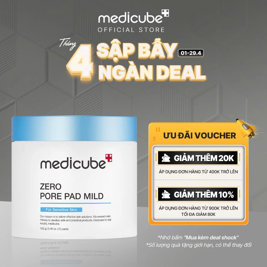 Miếng Toner Pad 2 mặt nhẹ nhàng tẩy tế bào da chết, điều tiết bã nhờn và làm sạch lỗ chân lông. Sản phẩm này đã được thử nghiệm là ít gây kích ứng và chứa rất nhiều thành phần làm dịu da. Trải nghiệm sự khác biệt với Zero Pore Pads (Mild) của medicube - giải pháp phù hợp cho nhu cầu chăm sóc da nhạy cảm.